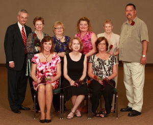 Front Row - from left to right: Bernadine Wallace, Sheila Eib, Susan Draves, and Sue Nicholson; Back Row - from left to right: Karen Foust, Harold Chaney, Kathy Peas, and Paul L. Usher; Not pictured: Cindy Columbus, Jeannie Starr, Kathy Taylor, Ben Townsend, and Karen Turner